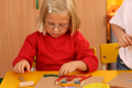 The child is engaged in a free play activity. The child selects what and/or where s/he would like to play or learn; the key here is that the child has either chosen his/her activities or has chosen what/how to play even if within an area assigned by the teacher. For example, if a teacher assigns a child to an art center and the child can paint or make whatever he likes, it would be free play; however if the child is assigned to an art center, and the child is instructed to paint flowers only, it would most likely be coded as individual or small group time. Such activities could include individual art projects, blocks, dramatic play, puzzles, puppets, computers, science areas, etc. The activity that a child has chosen may be completed on his/her own, and/or with peers and teachers.